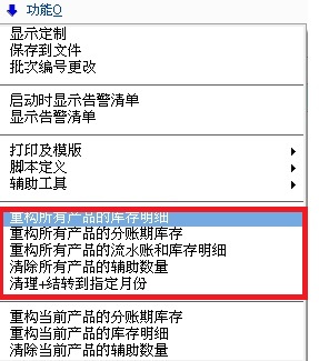 1-2是重新加载你的库存 3是重新加载你的库存流水及明细 4-5没有用过,可以查查F1帮助资料 6是清除你所有的单据,保留资料建立新的数据库 7是封存你已有的采购及销售类单据,禁止除查看外的任何操作,如反完成,完成,反审核等等操作 |