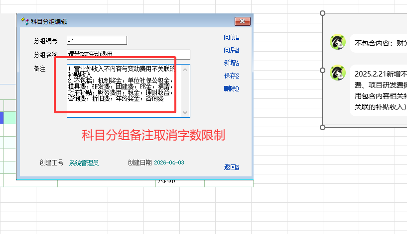 求助_科目分组备注取消字数限制哦_产供销