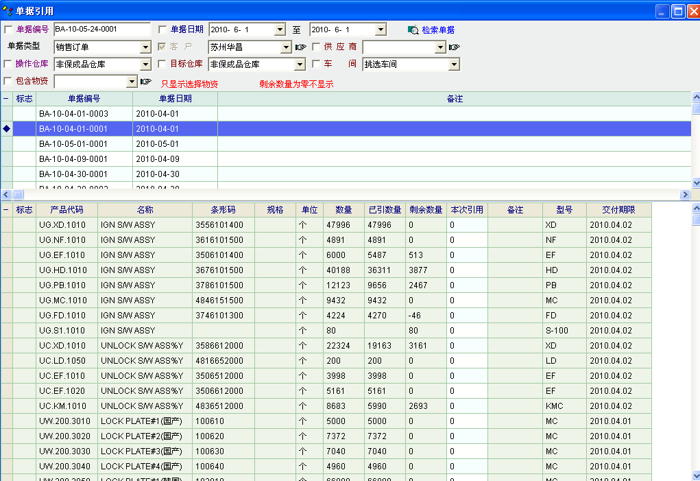 要限定条件里能不能加上两选择啊     1. 只显示选择物资   。因为在在选择物资 检索后就 出现的只是包含 这个物资的单据 但 如果上级单据的 物资很多要找个半天啊   很不方便  眼看花了  . 2.剩余数量为零不显示  ,这样也就不用看是零数量的物资了 啊     。这可以快速找到物资了  。希望做单独的选项啊 不是默认 这样灵活 可以选择一个 也可以两个同时选择 . 引用单据 界面里的  检索按钮 能不能 直接回车啊