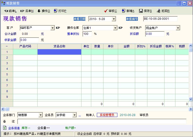 第二,在销售单据里,给一个客户一次送两个或两个以上仓库里的货,不能在同一单据中记录。(见附件2)
