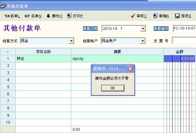 在收支管理里面,收款单和付款单不能调金额的顺序,比如把摘要提到金额前面就会出错,不能保存
