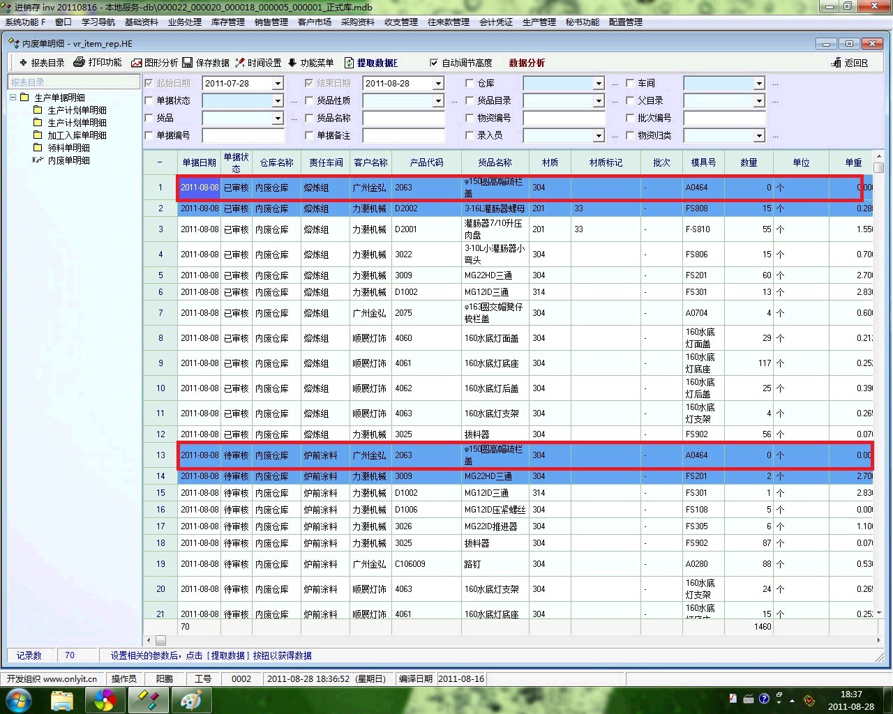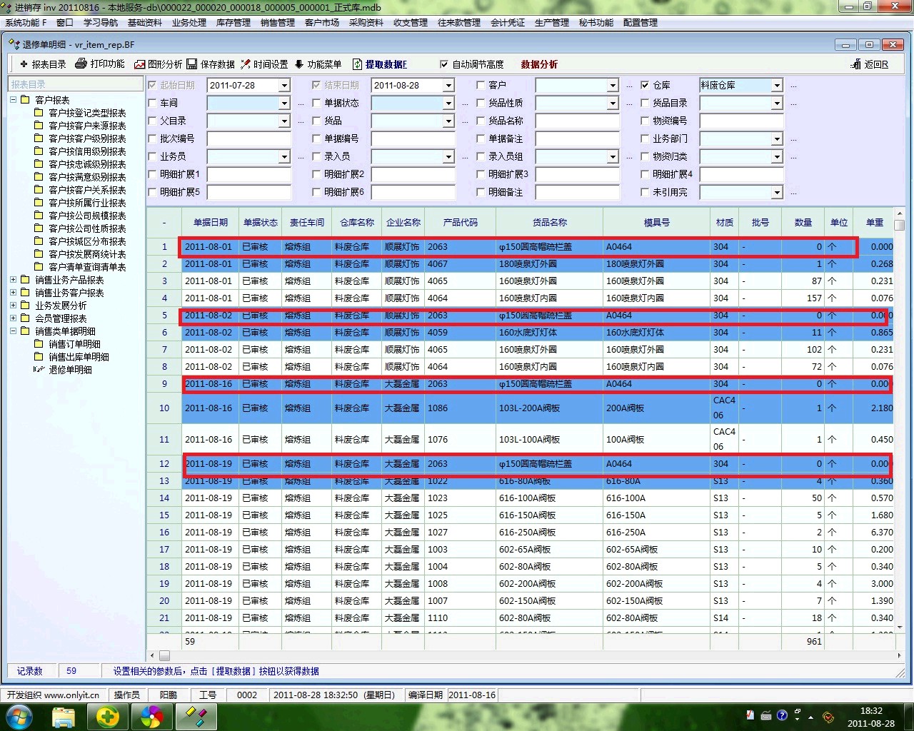 以前一直使用没有问题,更新最新版后,相关统计信息里面:如销售报表,销售订单等单据中出现重复信息。