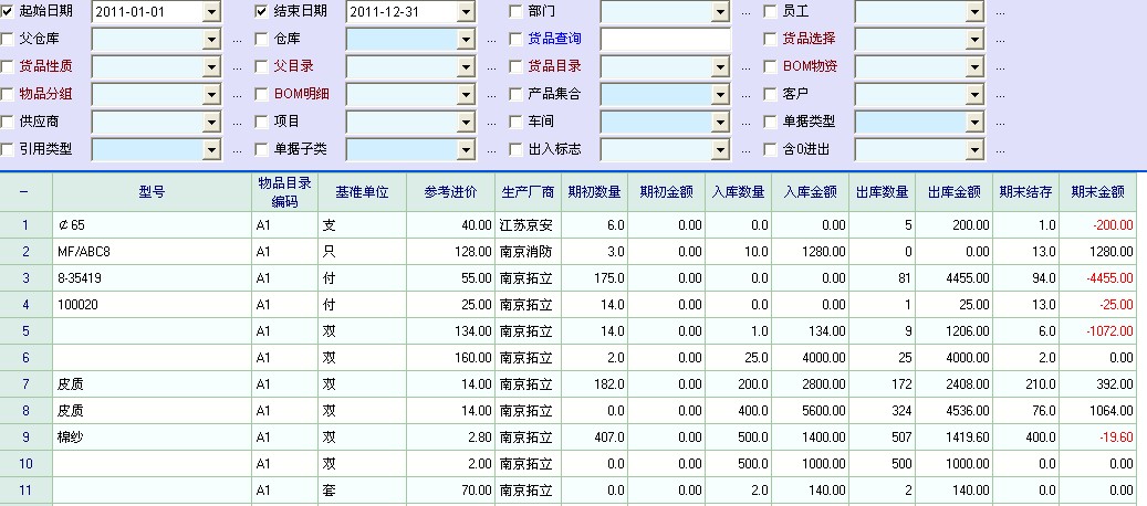 在做每个月的进出明细报表时候 发现期初金额变成了0及期末金额为负值 不知道如何处理