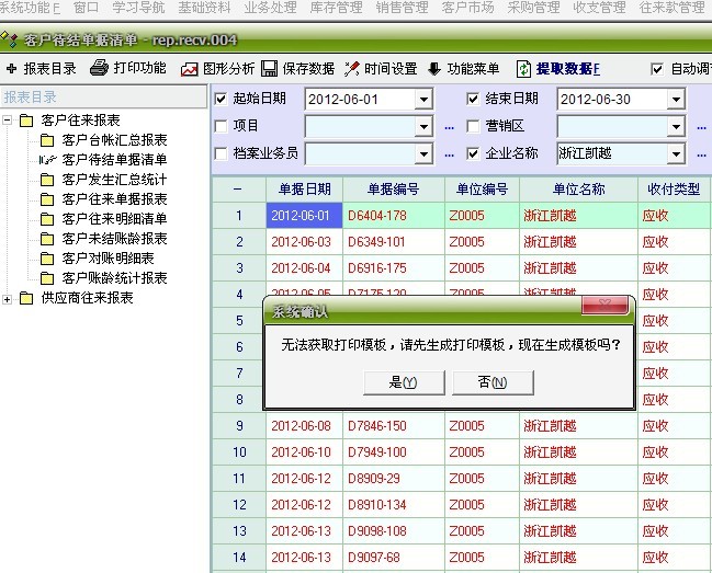 6.然后就出现对话框“无法获取打印模板,请先生成打印模板。。。”
