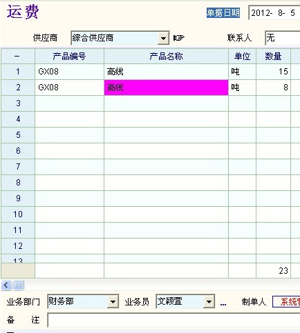 设置了一个运费的单据