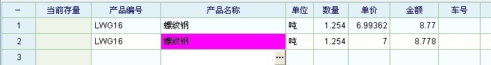2.输入数量--回车--输入单价,鼠标单击其他地方,金额保留小数后三位,且单价不变。