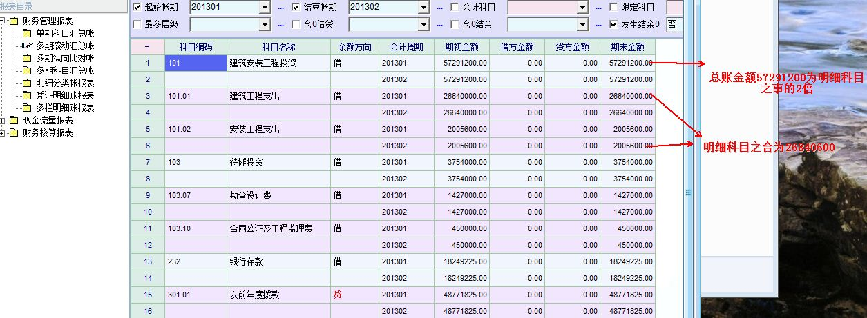 求助_财务系统BUG:总账科目金额是各明细科目金额之合的2倍。_产供销