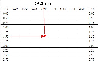 空白表格是每个横向及纵向交汇就是一个产品,比如产品-1.50/-100就是图中红色箭头所指的位置。那里就-1.50/-1.00的库存数量