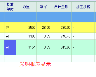 如图,采购单的单位是斤(折算单位),数量是10斤,单价是28,但采购明细报表的单位却只能显示成为基准单位(系统自动把采购单输入的折算单位及数量转化成其单位及数量),感觉很不直观,建议老师在明细报表中增加输入单位及输入数量两个字段与采购单相对应。