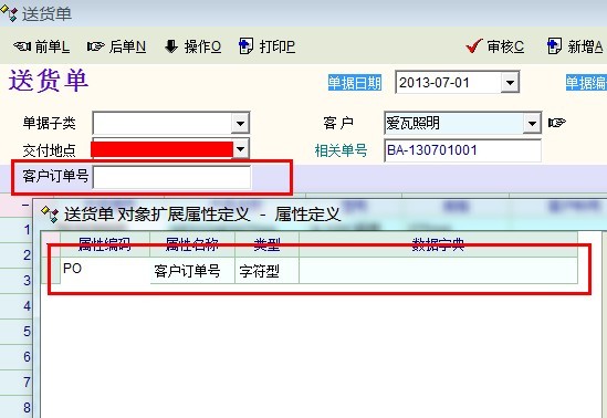 如,送货单中,客户订单号的 数据 自动默认为  销售订单中的 客户订单号