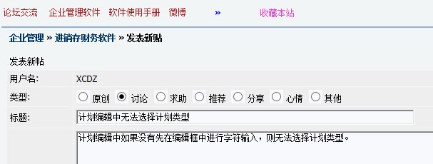 发贴类型应该增加问题反馈及建议两类型!这样有助于更清楚的反映发帖的内容。系统中存在的问题及BUG确实很多,很多时候发表的帖子都是反映系统中存在的BUG的,分类到现有的类型中好像不太恰当。心情这个类型我看就免了,好像没有谁发表过吧。