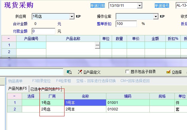 然后在录入单据的时候,如何才能在输入供应商后只显示该供应商对应的产品,而不是像现在这样还可以录入其他供应商的产品