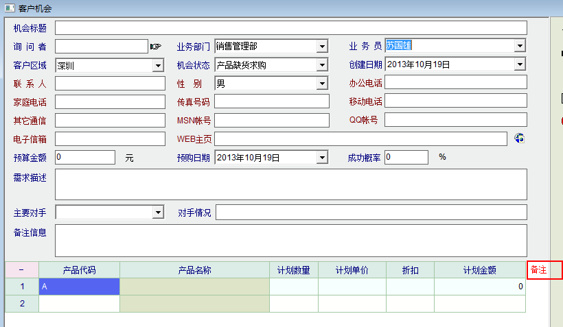商业机会中产品明细建议增加备注列