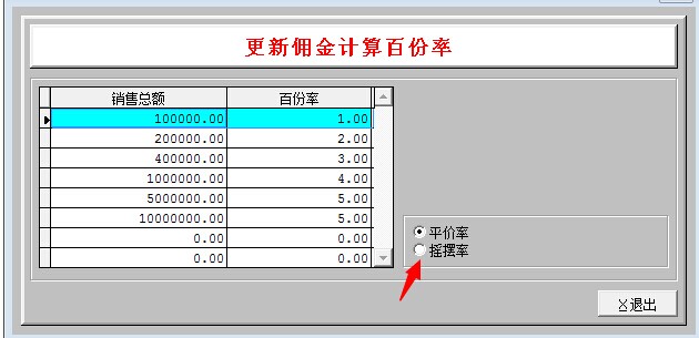 以下是按销售额计算业务提成的功能,平价率是指总额取值,摇摆率是指超额累进。