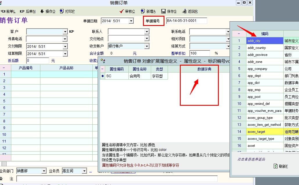 下图是看通过扩展,最好一个【字典】不知如何选,按确定,也显示出来,新的单据编码,请高人指点,谢谢