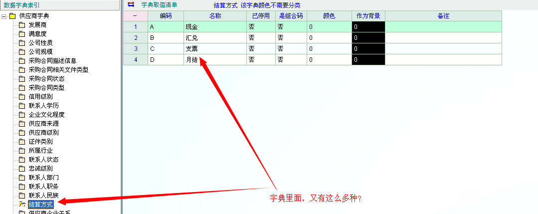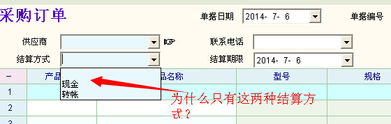 求助_为什么带过去的结算方式不全?_产供销