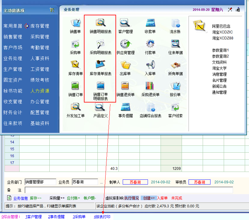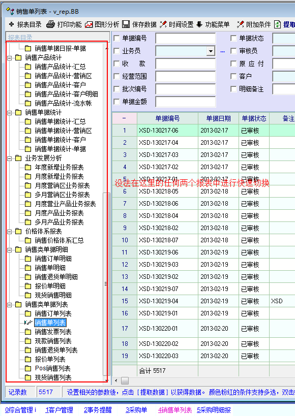 在销售报表或采购报表等其它所有的报表统计中,也只能同时打开一个报表。如没法在销售报表中在两个不同的报表(如销售产品统计-流水帐与销售单明细)之间进行快速切换。