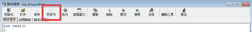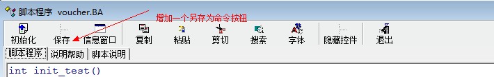 如图,建议老师在脚本程序中增加“另存为”命令按钮,方便编写脚本程序的菜鸟、新手在尝试新脚本、编写新脚本时保存原来的脚本,万一出错,可以重新载入原来的脚本,免得一当新脚本出错,又查不出是什么原因,也不知如何恢复原有脚本的困境。