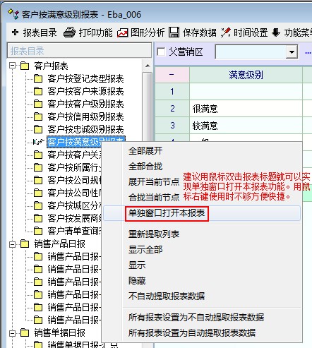 建议用鼠标双击报表标题就可以实现单独窗口打开本报表功能。用鼠标右键操作时不够方便快捷,操作不够流畅。