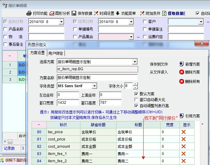 如图,在报价单中定义了一个单据明细扩展“同行报价”,但在报价单明细中没法定制显示该扩展属性。