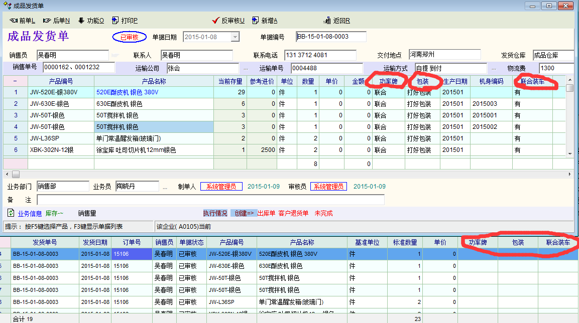 为什么发货单里的包装、功率牌发货单里有,在发货明细查询里面就没有显示呢?