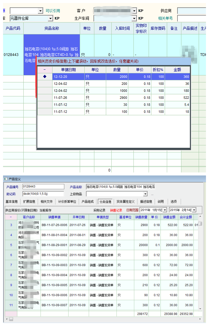 产品定义--分类信息--销售记录用起来相当爽,如何能在单据中按F8进行价格查询时,有个选择项,选择后同样可以象产品定义中上销售记录显示.方便定价.谢谢