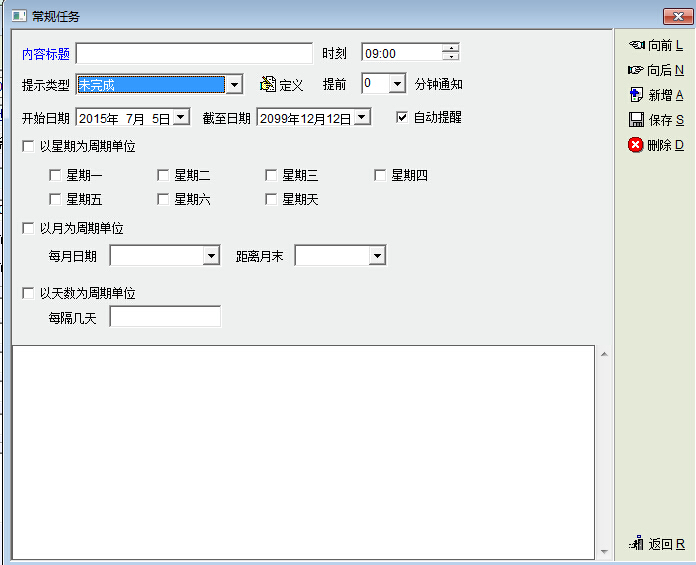 客户联系许多时候都是要求定期、持续的跟进的,客户管理中虽然也可以添加定期联系的重复提醒,但一个客户要设定一次,效率太低,功能也太简单,强烈希望能在客户接触计划制定中添加类似于常规任务的重复提醒!