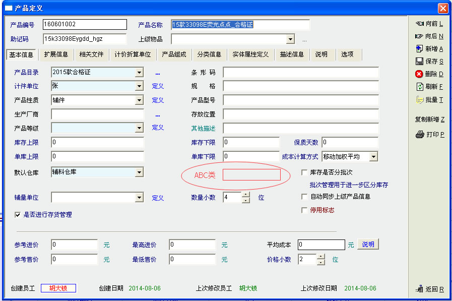 产品资料中分ABC类