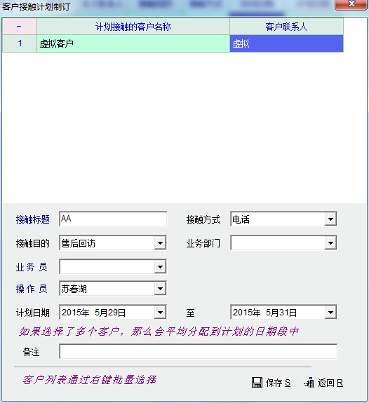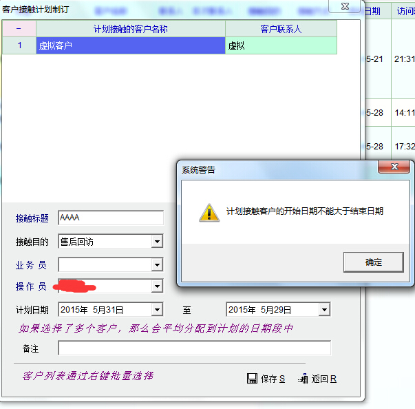 2、前面日期大于后面日期,系统只把前面日期当作计划接触的时间,如图2,图3所示。
