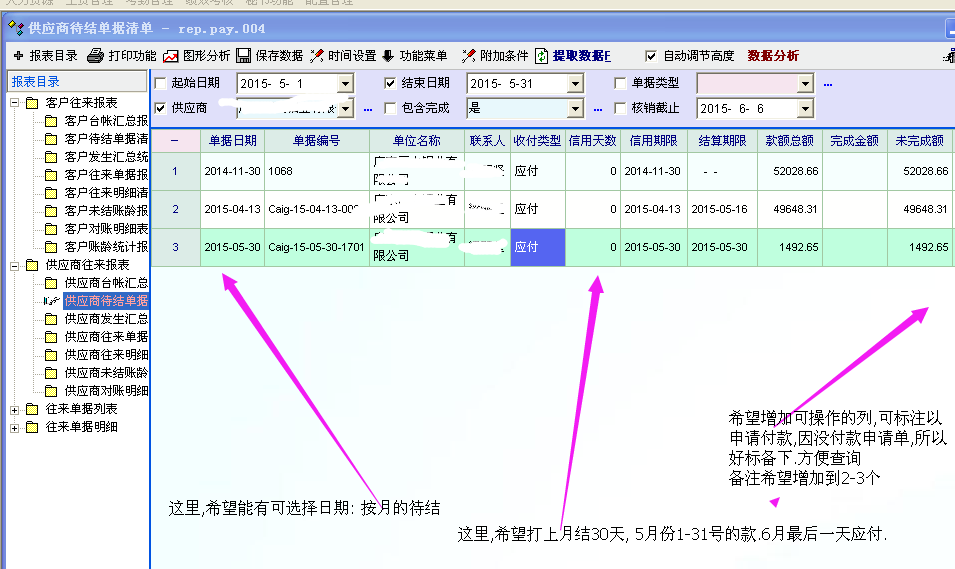 供应商和客户待结报表, 希望增加这些功能,因为是很实用的,  谢谢