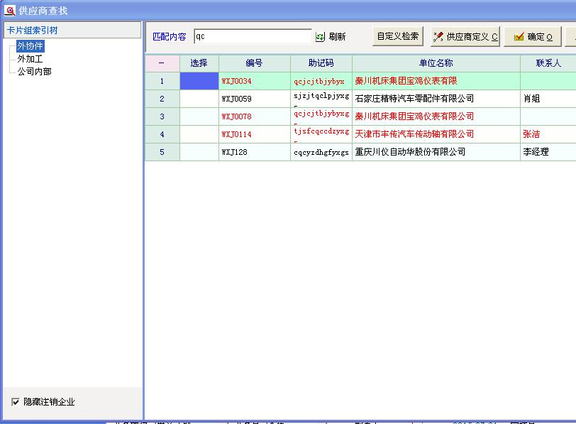 系统中 在供应商资料里 有“注销” 这个选项,单注销后的供应商,虽然可以设置隐藏显示,但是还是可以通过助记码等信息搜索到,而且不影响使用。我把图片作为附件上传一下,看看高手们谁能解决。红色的供应商信息,是我已经设置为注销的供应商。
