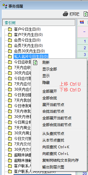 事务提醒中的目录内容好多,但现在没法改变目录的顺序,建议为事务提醒的目录树菜单添加上移、下移功能及快捷键。