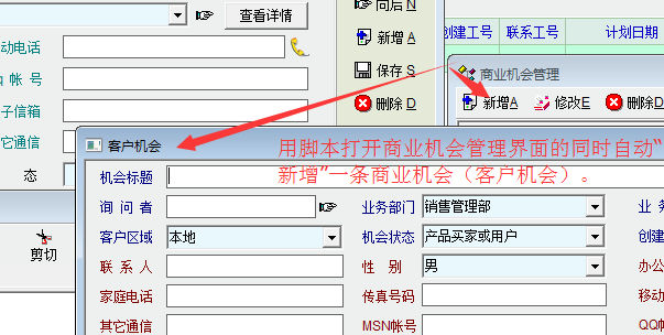 求助_如何通过脚本打开商业机会管理列表界面的同时自动“新增”商业机会(客户机会)?_产供销