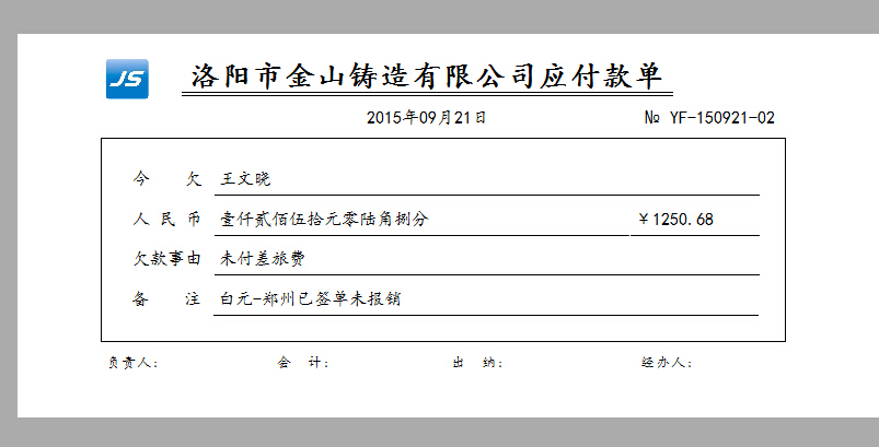 系统目前进销存可以添加自定义单据,收支模块和往来模块没有自定义单据功能,实务中由于不同的单位有不同的需求,还是经常需要适合本单位的自定义单据。比如说我们单位,由于涉及运费比较多,结算一般是月结,所以日常需要增加一个“运费结算单”,还有就是一些零星的费用或者其他一些没有进销存单据支撑的未付款等,这些在系统的“应付款单”中都无法实现,系统中的“应付款单”是关联进销存单据的,因此需要一个类似欠款单的“应付款单”。