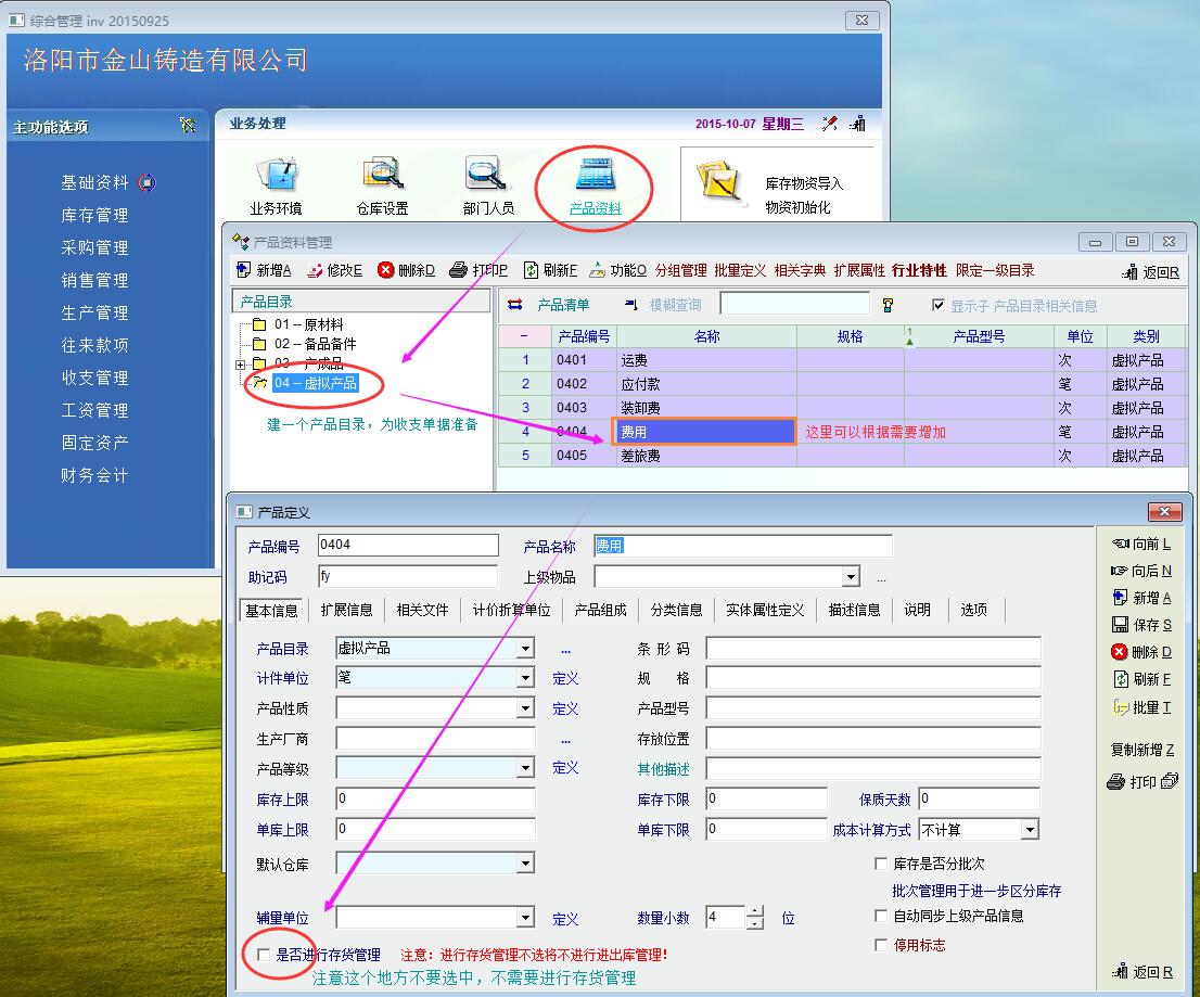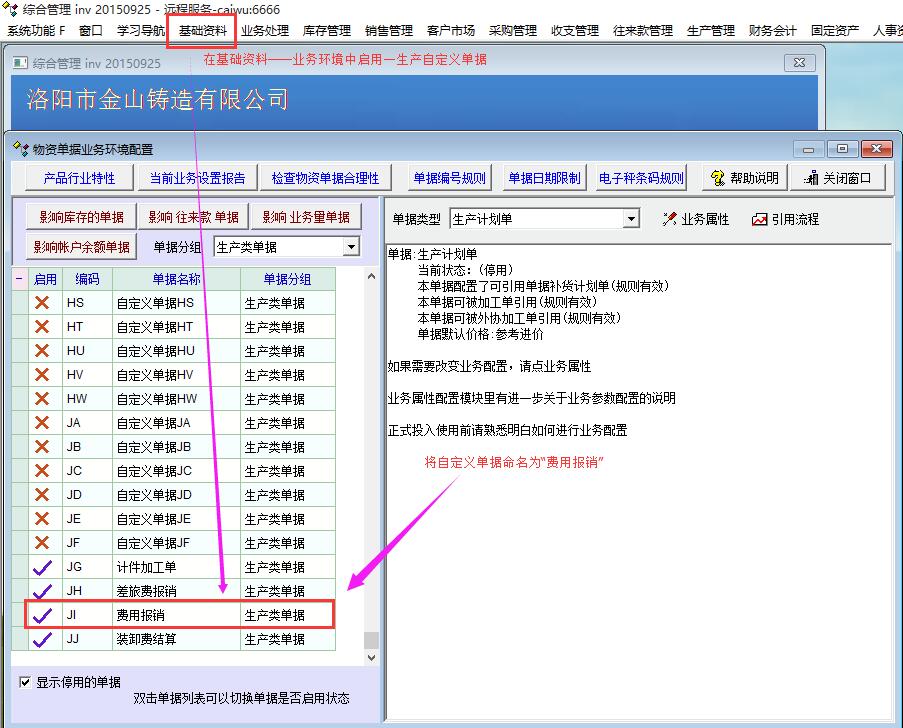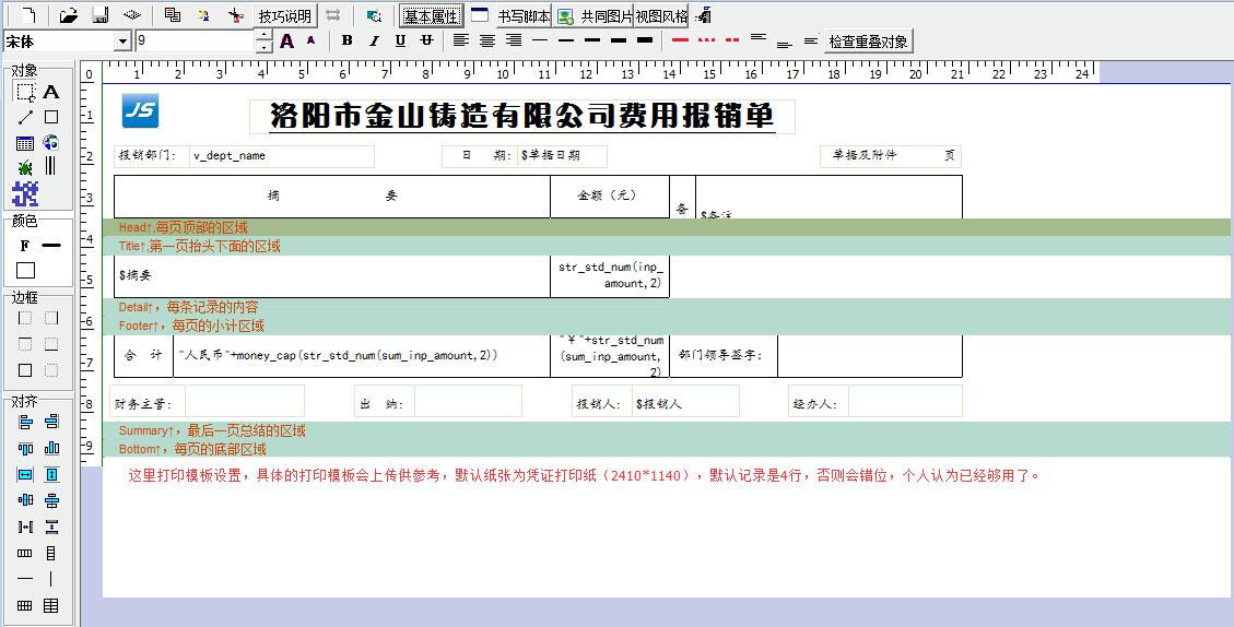 因此我变通了一下,采用进销存单据来制作收支单据,这里以“费用报销单”为例说明一下,当然还可以制作“差旅费报销单“等其他单据。首先,启用一个生产自定义单据,更名为”费用报销“,然后在产品资料里新建一个产品目录”虚拟产品“,增加一个物料”费用“。再对”费用报销“单据进行相关设置,包括单据业务规则定义、明细定义、脚本定义、打印模板设置等,这样一个“费用报销”单据就新鲜出炉了!我会上传个人使用的打印模板及相关图片供朋友们参考,不足之处请见谅。