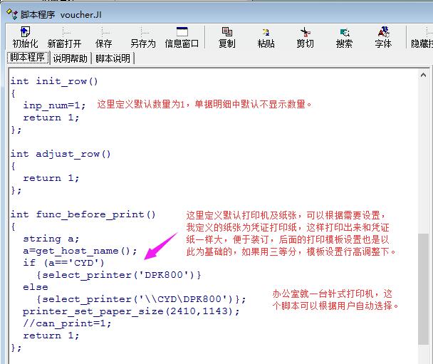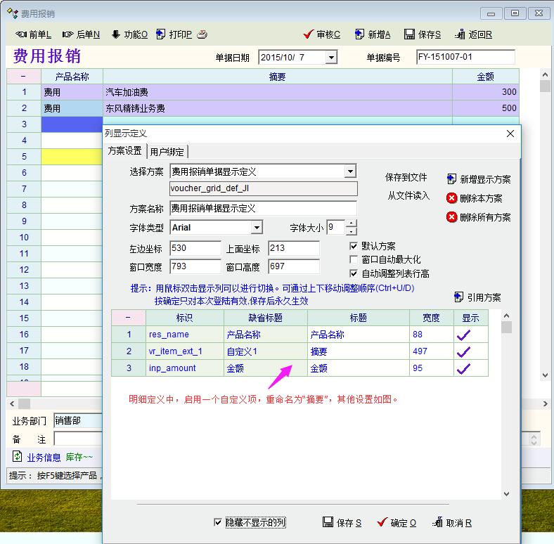 图示为单据明细定义及相关脚本设置