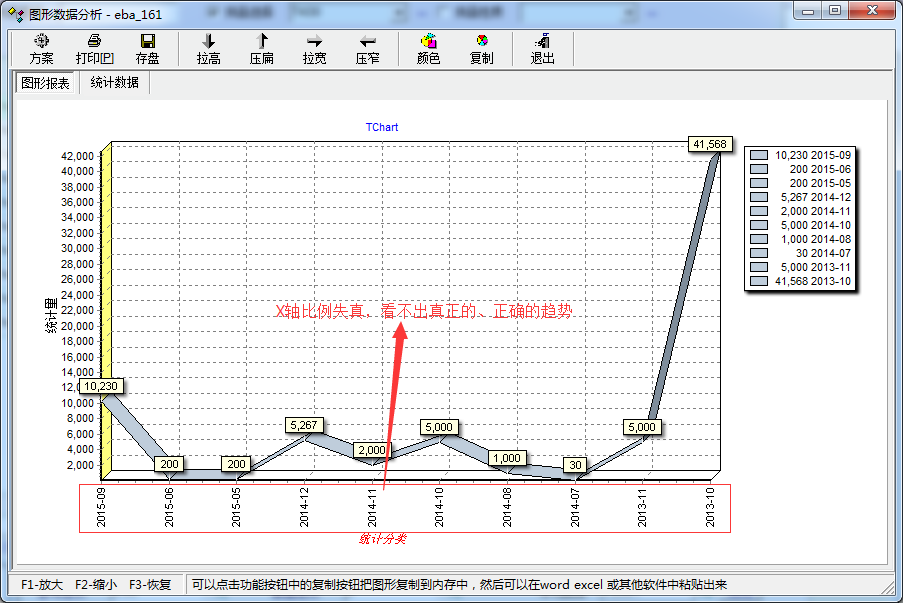 图片1由于时间间隔(比例)不一,趋势根本没有可比性。图片2则可以非常直观的看出供应情况的趋势。建议在图形报表中添加一个是否显示0销售月份记录的功能。