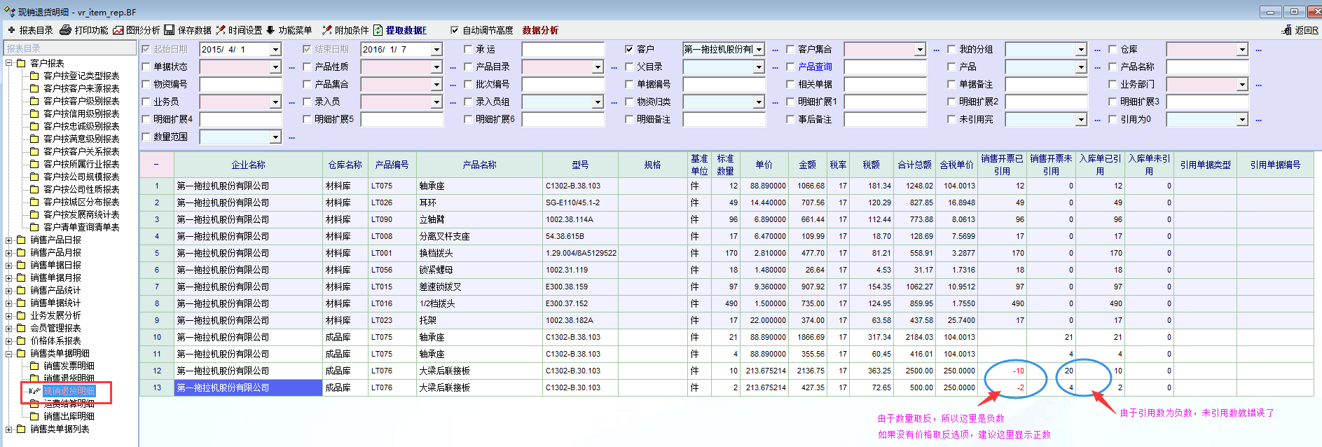 目前软件针对数量取反,在相关报表查询里,引用数量是正确的,但是引用金额却刚好差了两倍,导致相关报表数据出错,统计起来非常麻烦,也要重新进行计算。我想系统在后台针对“数量取反”选项应该是用了绝对值,如果金额也用绝对值,那引用金额的数字也就正确的。更新过好几个版本了,这个问题还存在,希望老师改进。