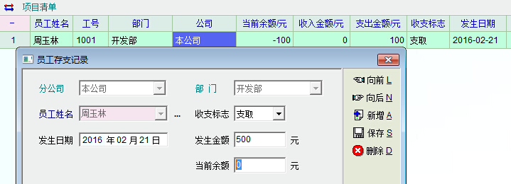 我们公司在实际运作中,经常存在工资结算期间员工发生存(当月工资没有领取或只领取一部分,累计到后面月份一起领取)支(比如2月5日发工资,但在1月提前预支)的情况。这些存支,我们使用系统中的“员工存支记录”进行记录,但在每月工资结算时,我们要把这些数据反映、录入到工资单中,但这时候就需要在“员工存支记录”中一个一个进行查阅,再把有发生存支的员工的记录、数据录入到工资单中。实际操作中,非常麻烦,而且非常容易出错。建议在工资单录入功能菜单中添加可以自动提取、复制员工存支数据的功能。