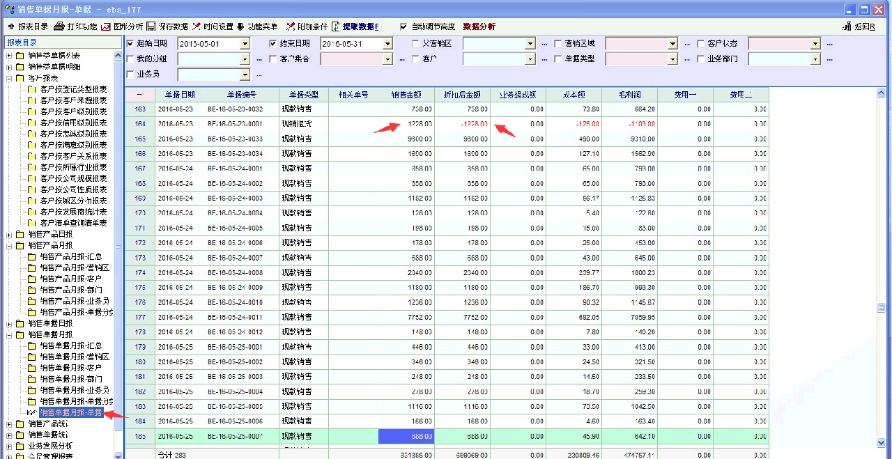 1、如果有一张销售退货单,销售金额列也应该是负数的,不是只折扣后金额是负数。但目前报表销售金额仍是正数。