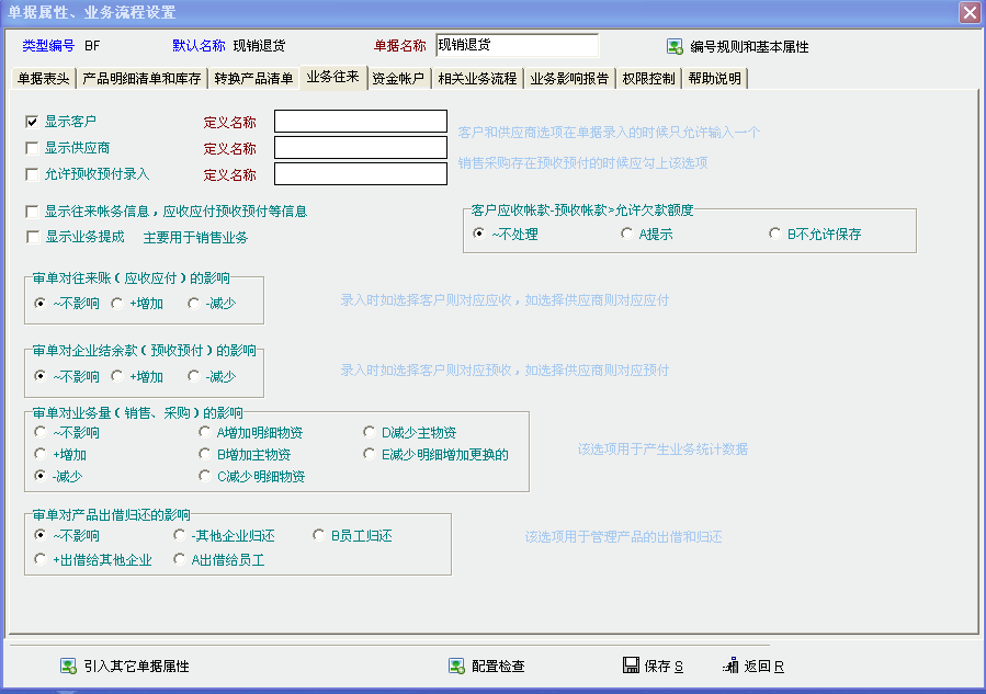 系统默认的现销退货单是不影响应收的,可以自己把影响选择为减少就可以了。