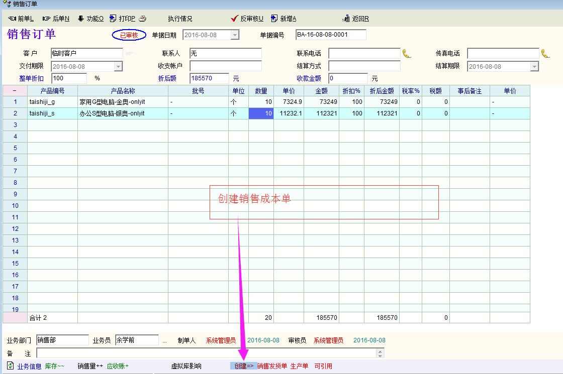 在OIT中。如果脚本用得好,要实现这些功能,是可以实现的。 1、销售订单中,单据审核之后,内容一般是不改动的,建议像材料成本 、人工成本 、费用、这些直接体现在销售报表-单据列表的形式展示出来,核算整单的毛利润。而不是明细产品的毛利润。除非将所有的这些成本都以明细去统计。这样以单据明细报表中统计也是可以。 2、在OIT中,计件工资、或工序工资、费用、都有相应的模块的单据去统计,只是现在没有统一关联显示的地方。例如生产单。如果在做这些单据的时候,都在单据头上分别记录下相应的销售订单的单号,查询报表的时候,利用脚本查询数据库,写入相关成本和费用,再计算毛利润。 系统中现在只统计了材料成本。 这也许是因为各个企业的使用软件方式都略有不同,尤其是OIT定制的。 举例:有的是使用采购入库单关联销售订单号,以统计为哪个订单采购了哪些物料有的也有可能是直接使用收支管理-其他付款,关联销售订单号。而要想达到精细、精准,又要求这些单据都只能一单关联一个销售订单(这与常规做单习惯不一样,出纳也许一笔支出多个采购业务的费用)。 或者一笔数据登记2次。一次是常规的模块功能里,另一次是专门的成本费用里(以销售订单的形式,也就是楼主所说的形式)。而能做到将生产、材料、费用都分别准确地计入到单个的销售订单甚至订单中的产品中,这家企业的数据管理水平已经很不错了。 :) |