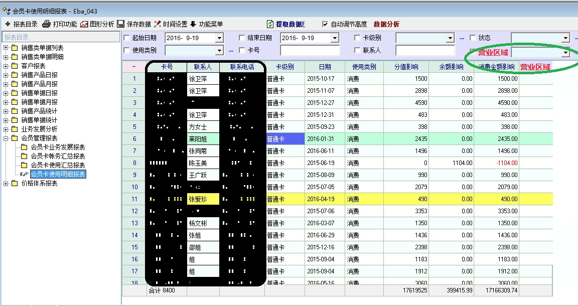 近日,使用会员管理报表功能发现,系统会将所有会员信息都列出来。没有对所属营业区域加以限制,在有选择性的查看会员的时候,很不方便,恳请团队可以增加在检索条件中和显示定义中可以有营业区域这个条件的功能。