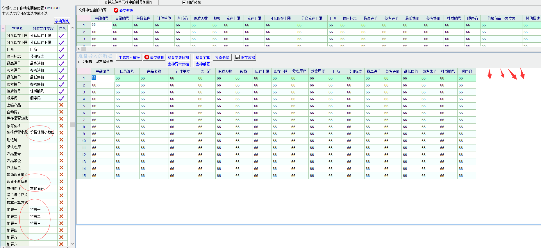 2、关掉程序重新登陆,导入刚才生成的模板,相同的字段没有自动勾选