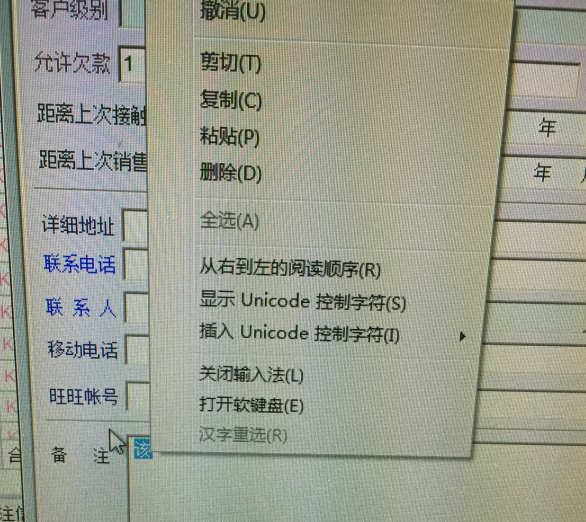 如图,客户接触记录编辑中,“内容记录”编辑不支持鼠标右键功能菜单(撤消、复制、剪切、粘贴等)功能,希望可以支持!