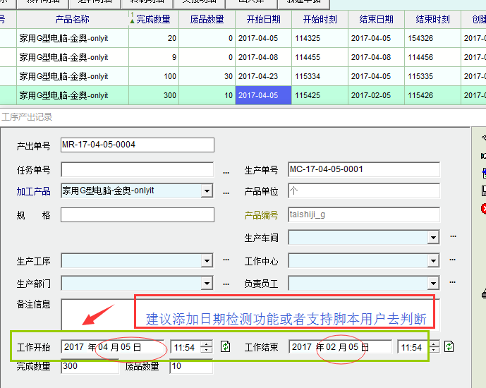 另:目前工序任务和工序产出编辑界面都支持脚本的。