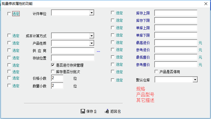 推荐_批量修改产品属性的功能添加规格、产品型号、其它描述项目。_产供销