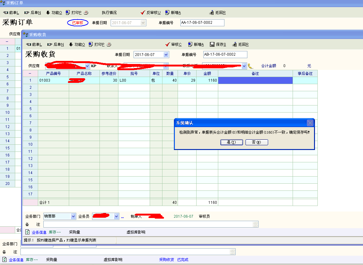 求助_表头合计金额和明细金额不一致 出现好多次了_产供销