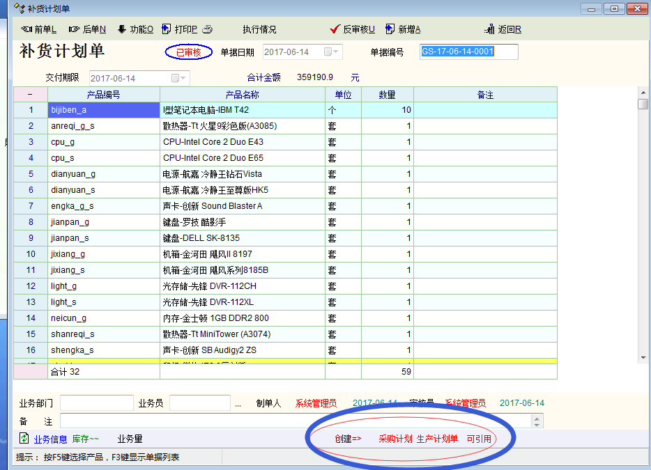 一直在实验需求分析计算,发现需求计算分析那个辅助功能下的,"针对界面上数据创建补货计划单",如果直接可以创建采购计划,外协加工,生产计划单,就省了一步。