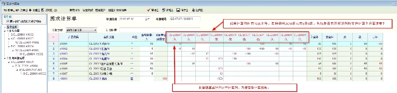 此外还要考虑物料增多时是否有足够的列数进行扩展显示计算,计算速度能否保持正常水平。